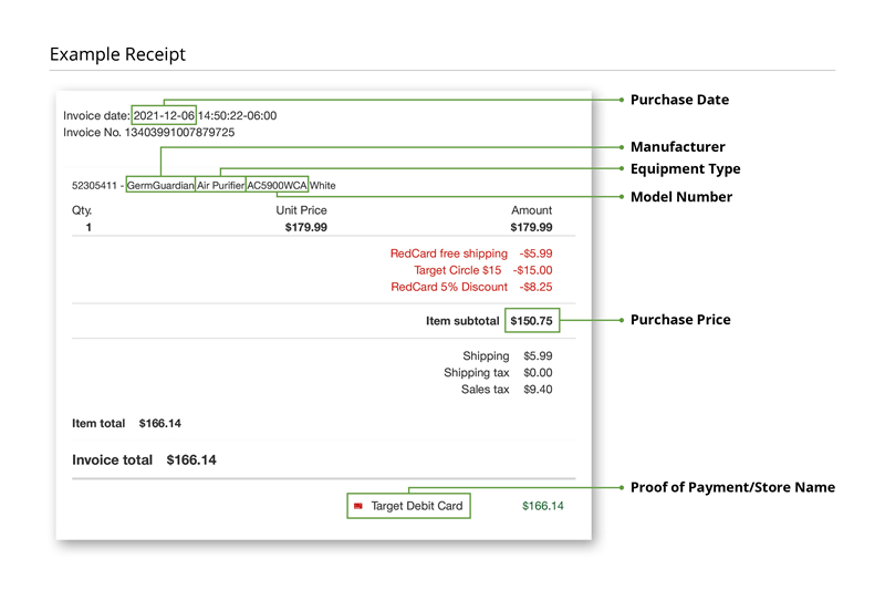 Have a digital copy* of your sales receipt or invoice showing proof of payment, equipment type, and date of purchase.
